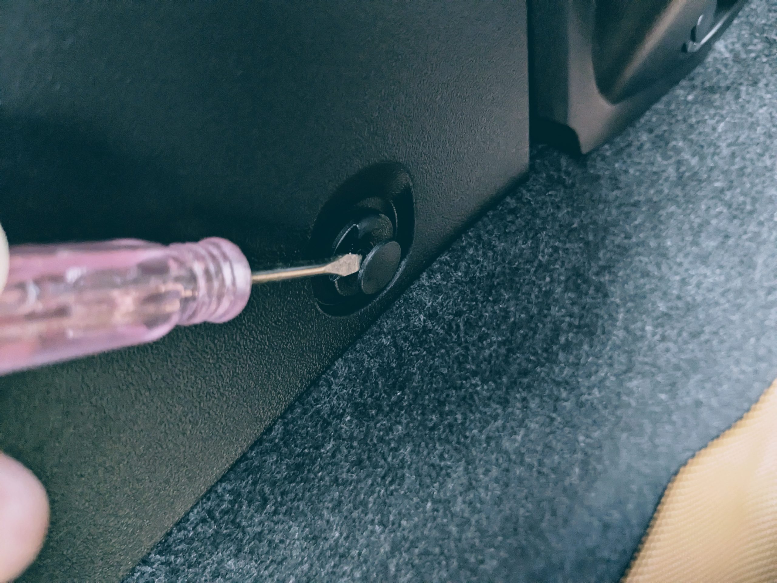 まず、作業の邪魔になるので、シートを両側とも一番手前に引いておきましょう。