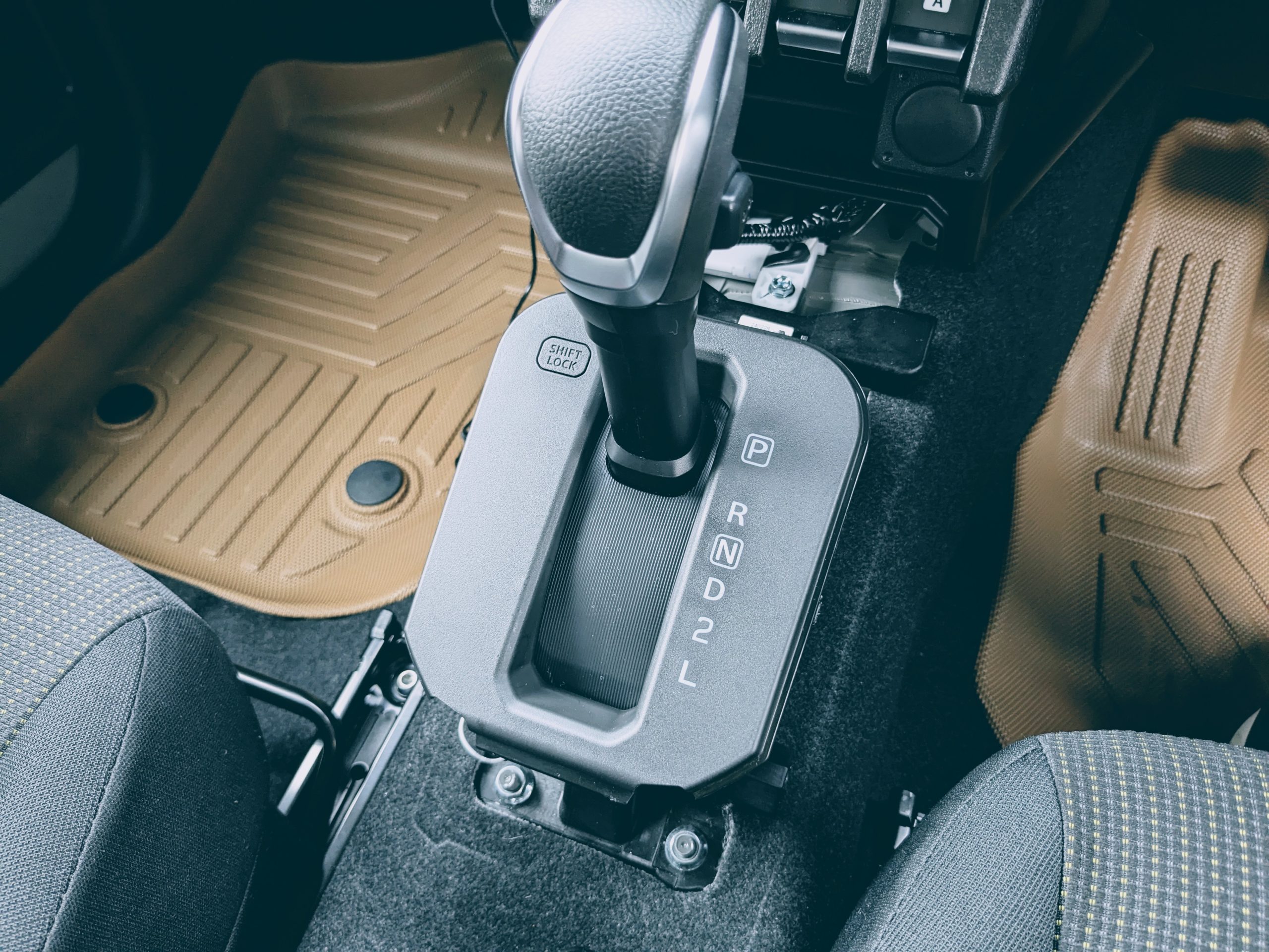 ジムニーのセンターコンソールは前後に分断されています。(間にトランスファーレバーがある)