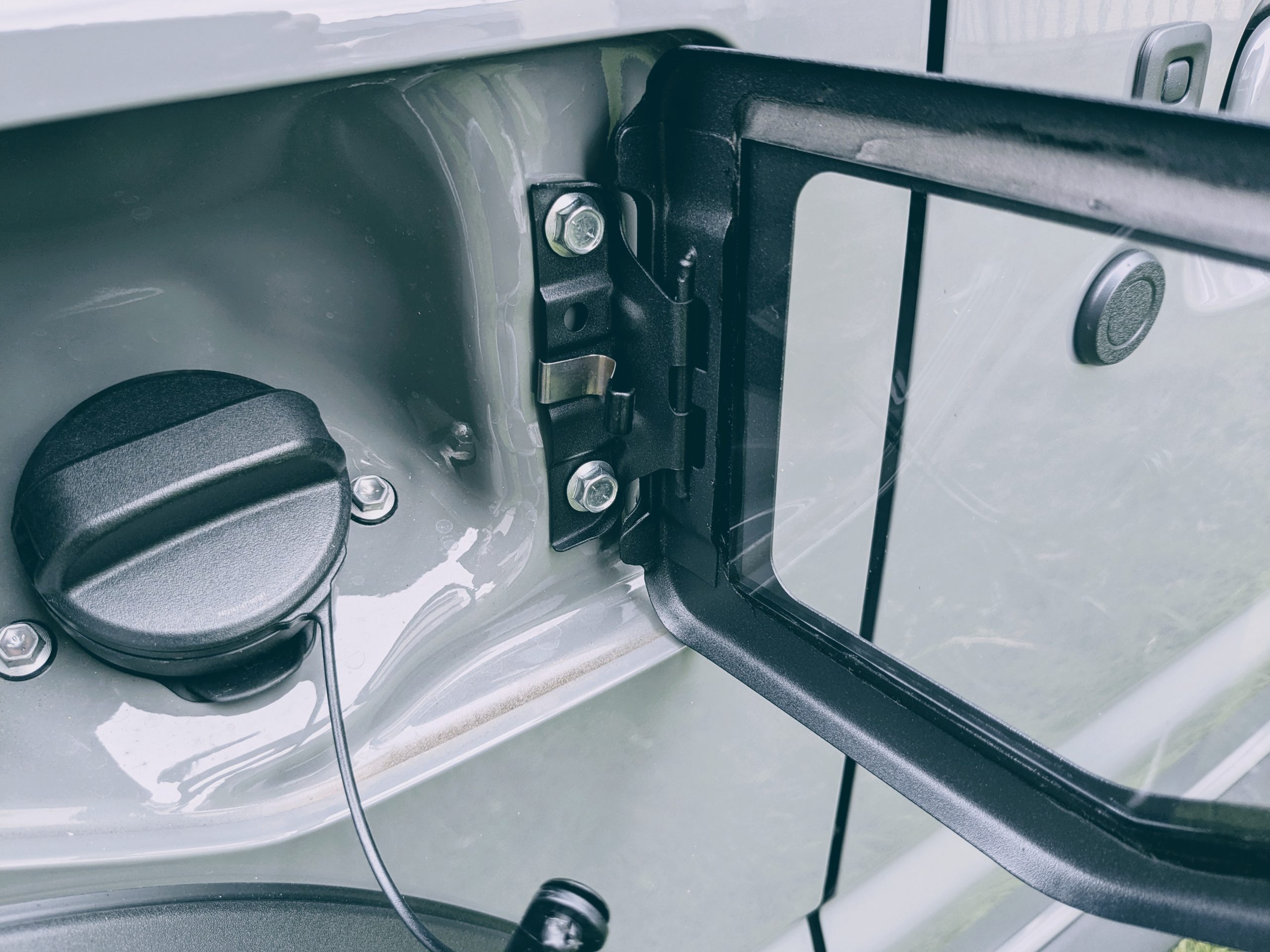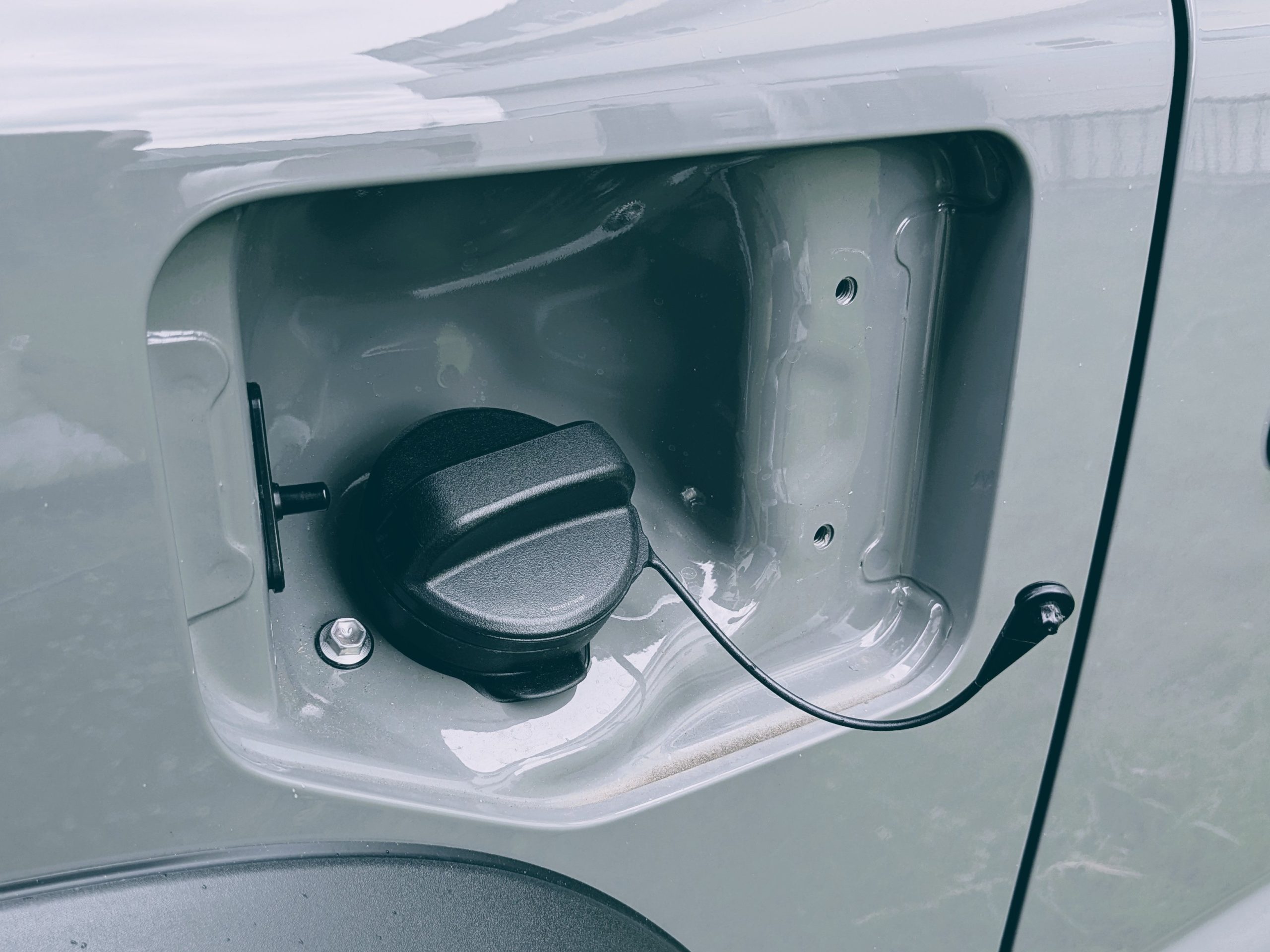 ですが、このガラスリッドカバーには純正の脱落防止のコードがそのまま利用できるため、給油時にキャップを置き忘れると言いった心配がありません。