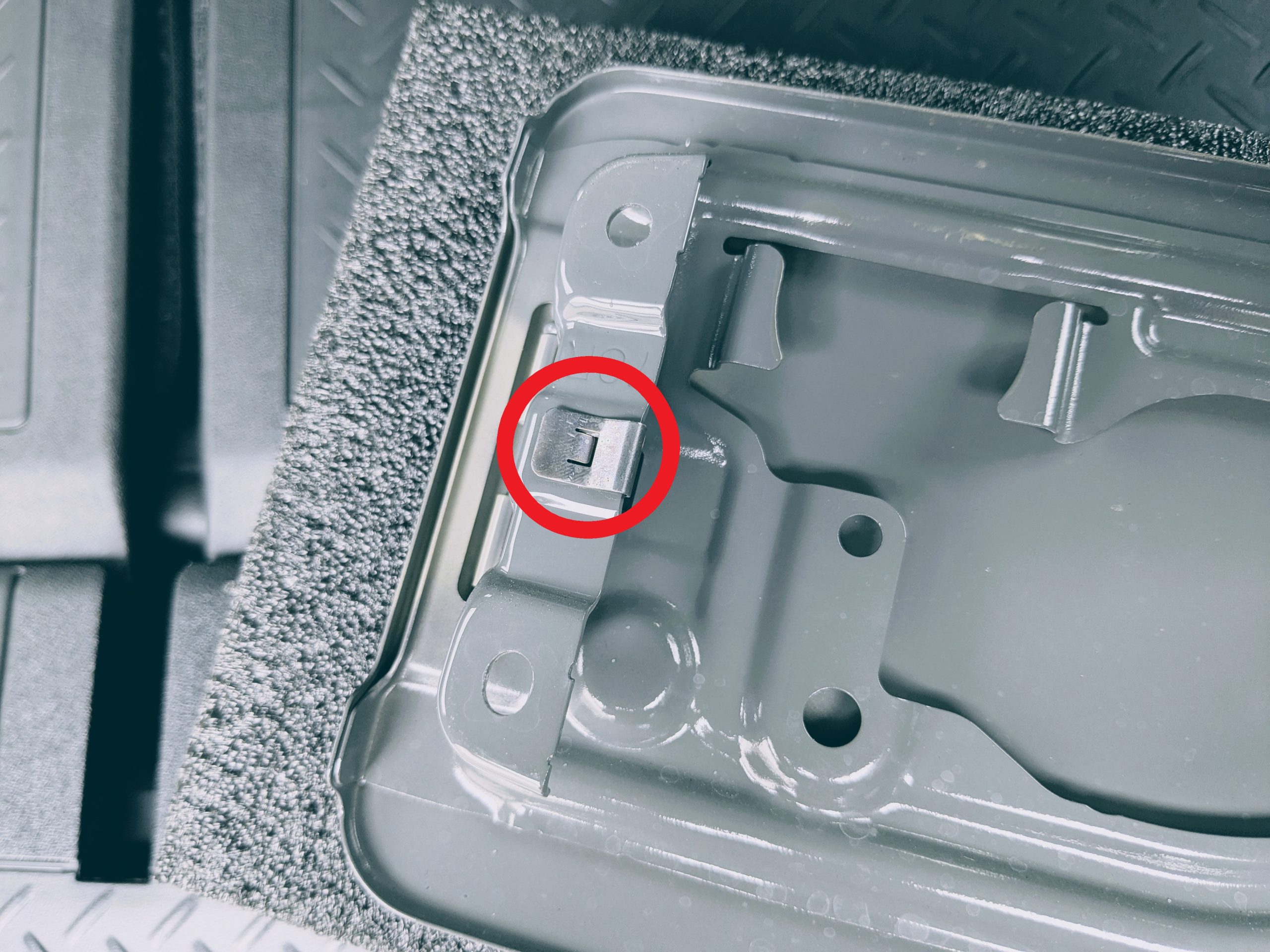 次に、取り外した純正のカバーに付いているクリップを外します。(赤○)