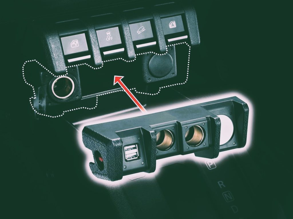 - 2つのシガーソケットと2つのUSBポートを増設できる