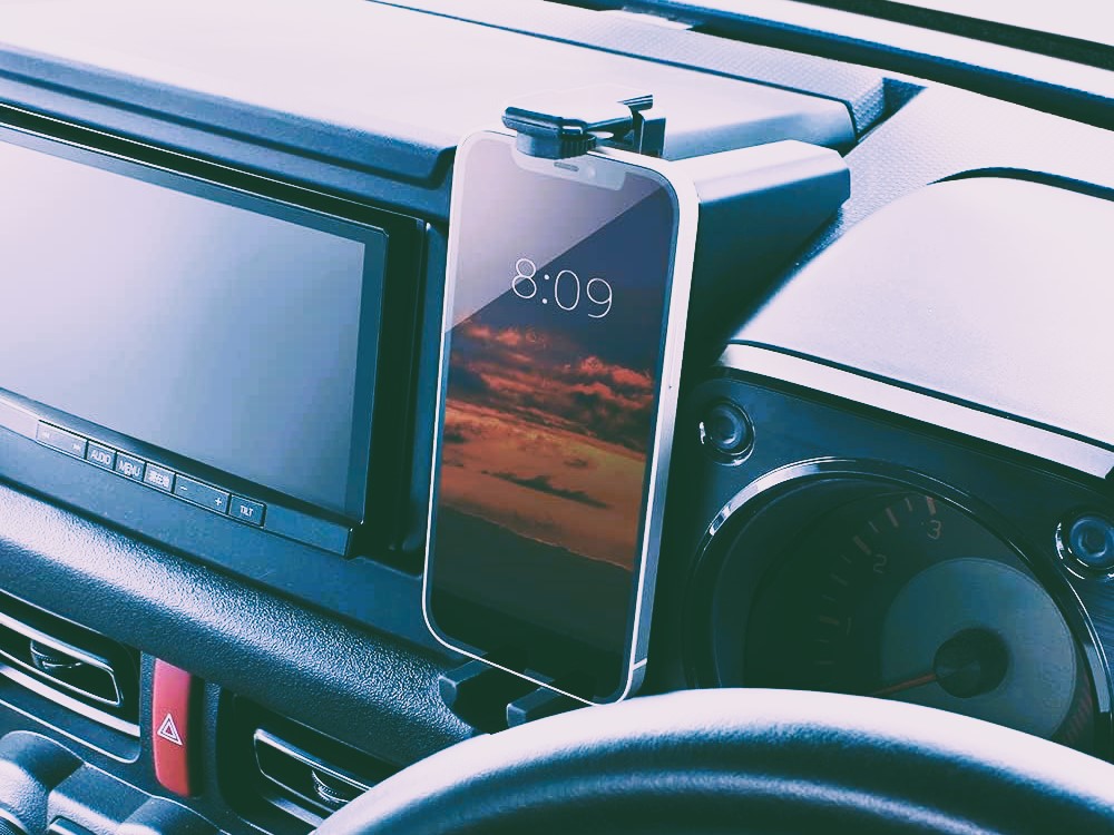 ジムニーの車内において、スマートフォンの置き場所についてお困りの方へ。