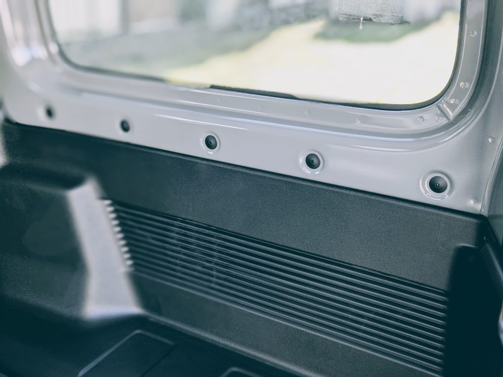 2. ラゲッジルーム右側のネジぶた4箇所をバックドア側から外します。